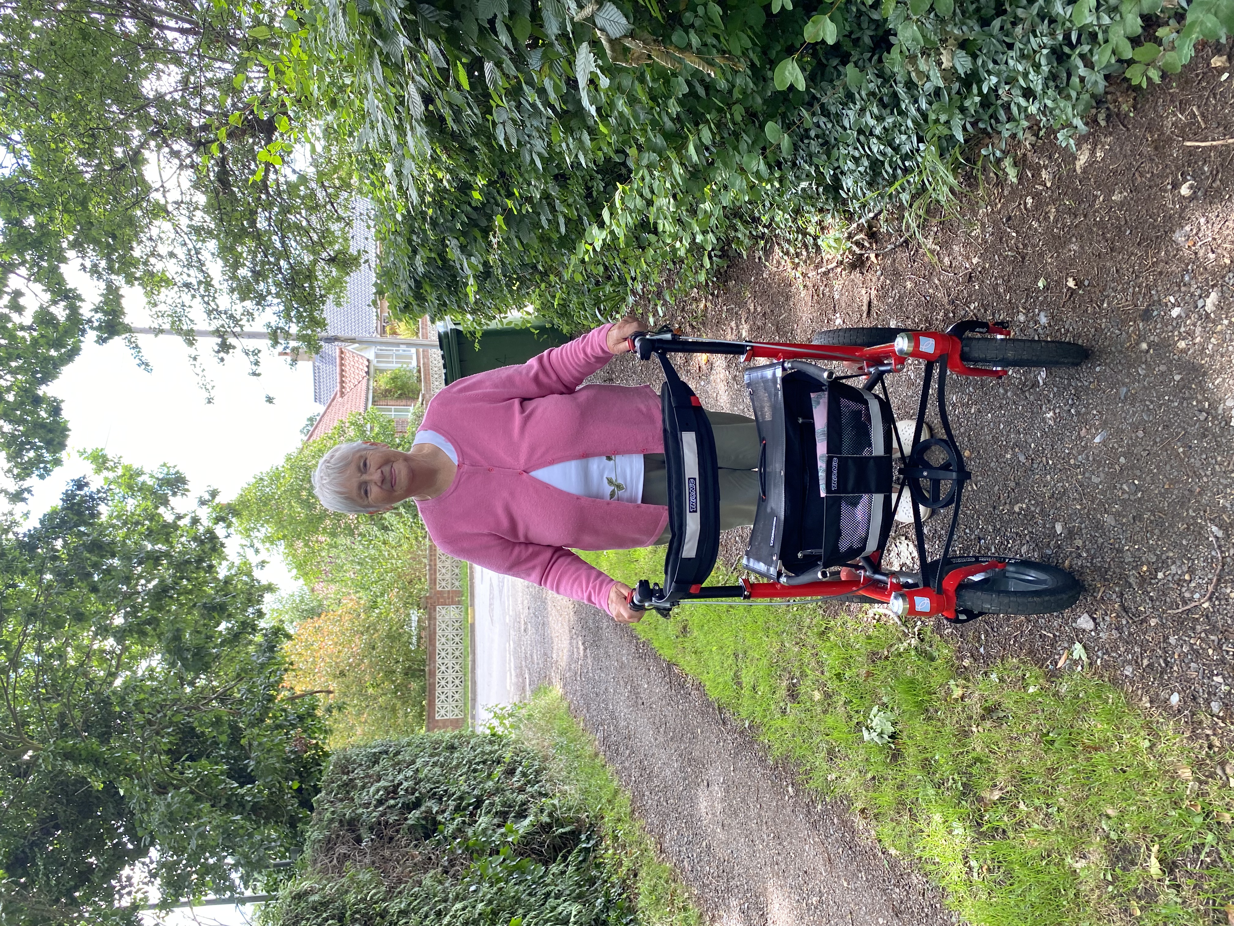 Jestem absolutnie zachwycona. Od czasu lockdownu nadal chodzę na spacery po atrakcyjnej dzielnicy Inverness, która jest moim domem. Wdycham świeże, górskie powietrze, ćwiczę i mam kontakt z osobami wyprowadzającymi psy i ludźmi w ich ogródkach. To ostatnie jest ważne, ponieważ jestem wdową mieszkającą samotnie z rodziną na dalekim południu. Stan naszych zaniedbanych chodników jest fatalny, ale mój nowy „pojazd” generuje znacznie mniej wibracji niż mój stary, który miał małe koła i twarde opony. Nadal jestem w stanie przejść bardzo krótki dystans tylko z laską, więc mogę dojechać taksówką na spotkania i do kilku miejsc w mieście. Ale jeśli nadejdzie czas, kiedy nie będę już w stanie tego robić, taksówkarze zapewniają mnie, że poradzą sobie z moim składanym chodzikiem, bez problemu. Chodzik w znacznym stopniu przyczynia się do poczucia wolności i dobrego samopoczucia pomimo mojego sędziwego wieku 94 lat. Moim pierwszym samochodem w życiu był czerwony sportowy MG Midget!