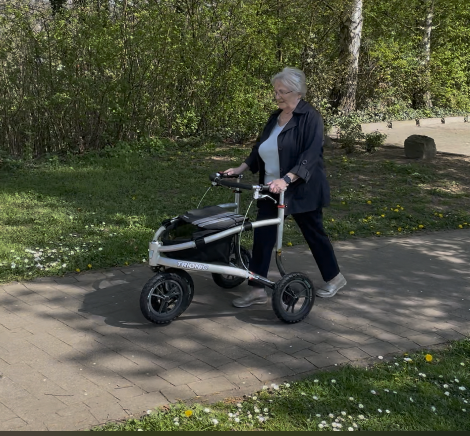 Po tym, jak promień chodu naszej 86-letniej matki zmniejszył się z powodu niestabilnego chodu i mogła poruszać się poza domem tylko z osobą towarzyszącą, rozważała – choć z bardzo ambiwalentnymi odczuciami – pomoc w poruszaniu się. „Zwykły” chodzik nie wchodził jej w grę – widziała wiele osób, które „wisiały” za chodzikami i na każdym nierównym krawężniku osiągały granice możliwości takiego „zwykłego” chodzika.