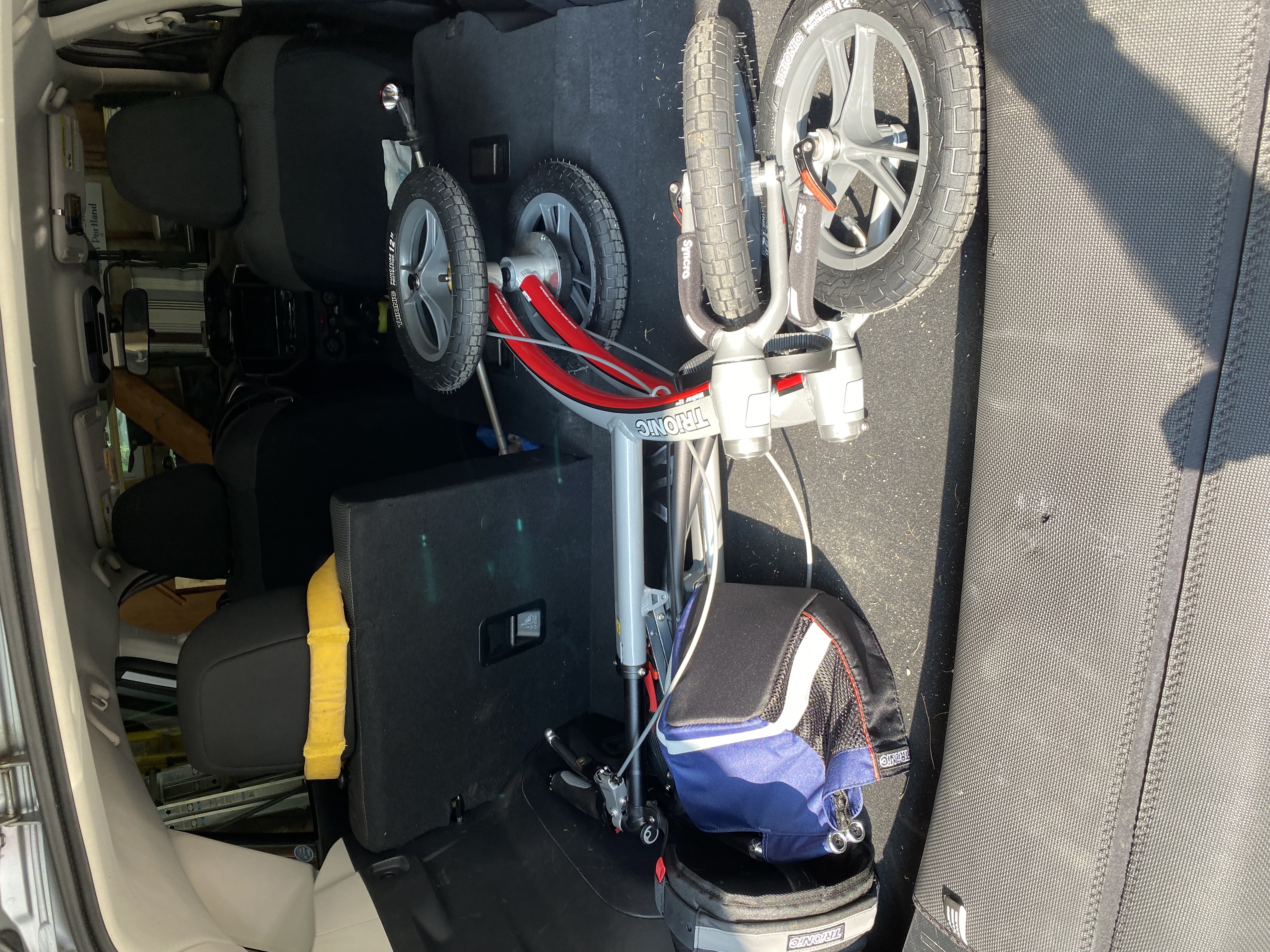 Gorąco polecam zalety wózka Trionic 14er. Jest duży, ale zmieści się do samochodu, gdy trzeba pokonać dłuższe dystanse.